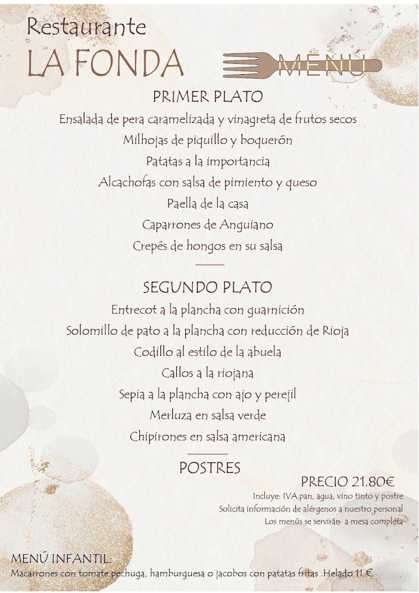 At Restaurante La Fonda, located at C. San Antón, 32, 26540 Alfaro, La Rioja, Spain, the weekend menu offers an exciting variety of dishes that change each week, keeping things fresh and dynamic. For a special experience, diners can enjoy the Menú Degustación, which allows them to sample a selection of carefully curated dishes that showcase the best of the restaurant's flavors. Alternatively, the regular Menú Fin de Semana is perfect for those looking for a more classic yet equally delicious selection. The restaurant also offers the convenience of ordering dishes for takeout, making it easy to enjoy their offerings at home. Whether dining in or picking up, guests can expect a delightful and flavorful experience, with something new and exciting to try every weekend.